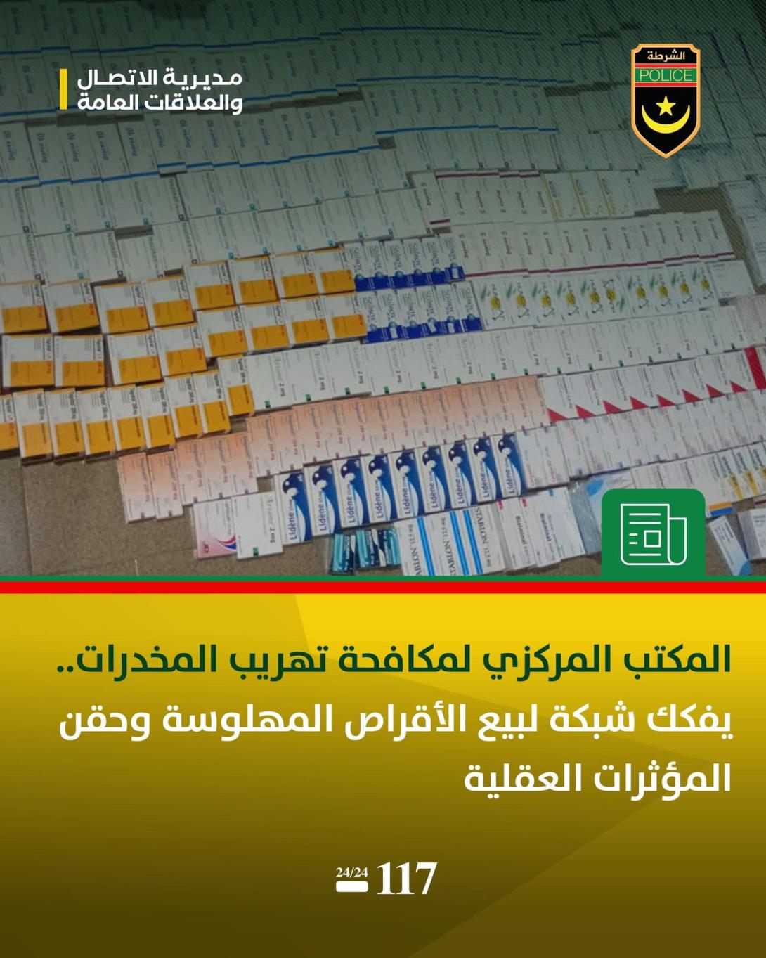 أعلنت الشرطة الوطنية، عن تفكيك شبكة إجرامية متخصصة في بيع وترويج الحبوب والعقاقير المهلوسة، كانت تتخذ من إحدى الصيدليات المرخصة بالعاصمة نواكشوط غطاءً لممارسة أنشطتها غير المشروعة.