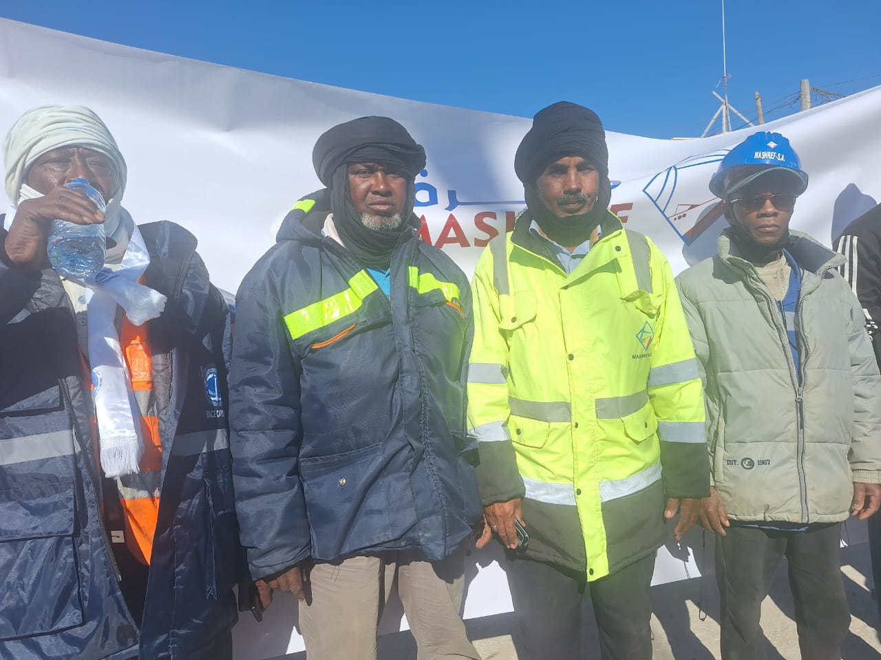 الشركة الموريتانية لاصلاح السفن مشرف إدارة وعمالا يرحبون بفخامة رئيس الجمهورية السيد محمد ولد الشيخ الغزوانى وحسب تصريح أحد مناديب العمال الحافظ ولد السنى ولد محمد توافد العمال جميعا لاستقبال رئيس الجمهورية بنواذيبو.