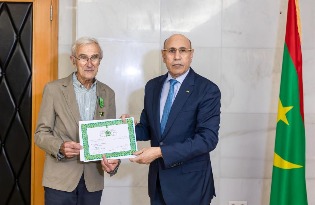 وقد وشح فخامة رئيس الجمهورية، الباحث الأركولوجي الكبير البروفسور بيرنار سيزون، الذي يزور بلادنا حاليا، بوسام ضابط في نظام الاستحقاق الوطني، تقديرا له على ما قدمه من خدمات للآثار و التراث الموريتاني بأبحاثه الغنية في مجال الحفريات، ودوره المشهود بالتعريف بالمواقع الأثرية في كومبي صالح وتاوداغوست.