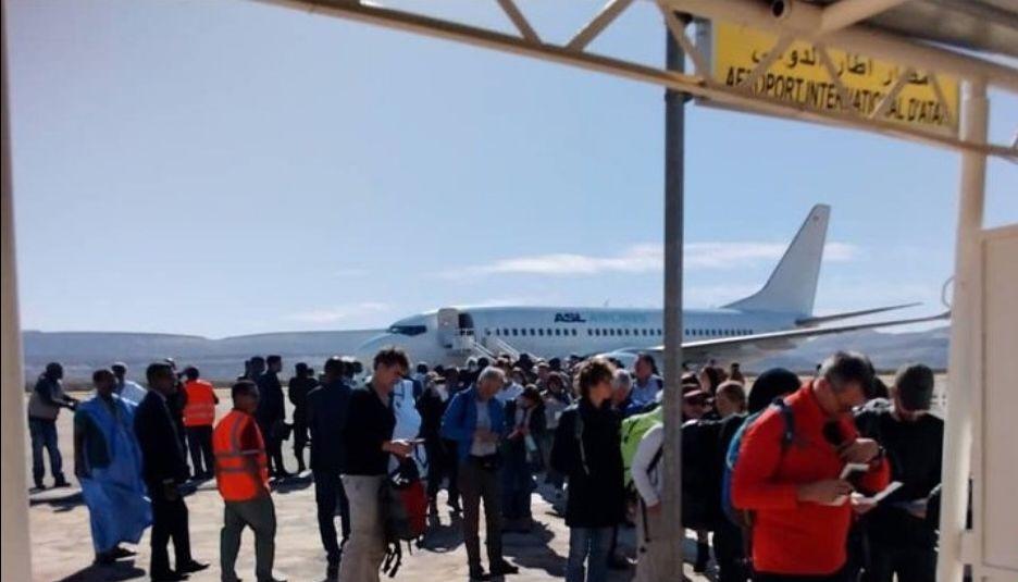 وكان في استقبال الرحلة الأولى القادمة من العاصمة الفرنسية باريس، الأمين العام لوزارة التجارة والصناعة والسياحة ، و الوالي المساعد لوالي آدرار سيداتي القطب و حاكم مقاطعة أطار و بعض الفاعلين في القطاع السياحي .