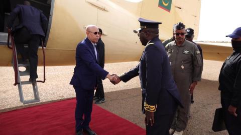 وودع فخامة رئيس الجمهورية عند سلم الطائرة من طرف والي الحوض الغربي السيد أحمدا مامادو كلي، ورئيس جهة الحوض الغربي السيد جمال ولد محمد، وحاكم مقاطعة لعيون عبد الله ولد أحمدو زين، وعمدة البلدية السيد سيدي محمد ولد البكاي، وقائد المنطقة العسكرية الخامسة العقيد محمد الحافظ خطار، .و نائبي مقاطعة لعيون.