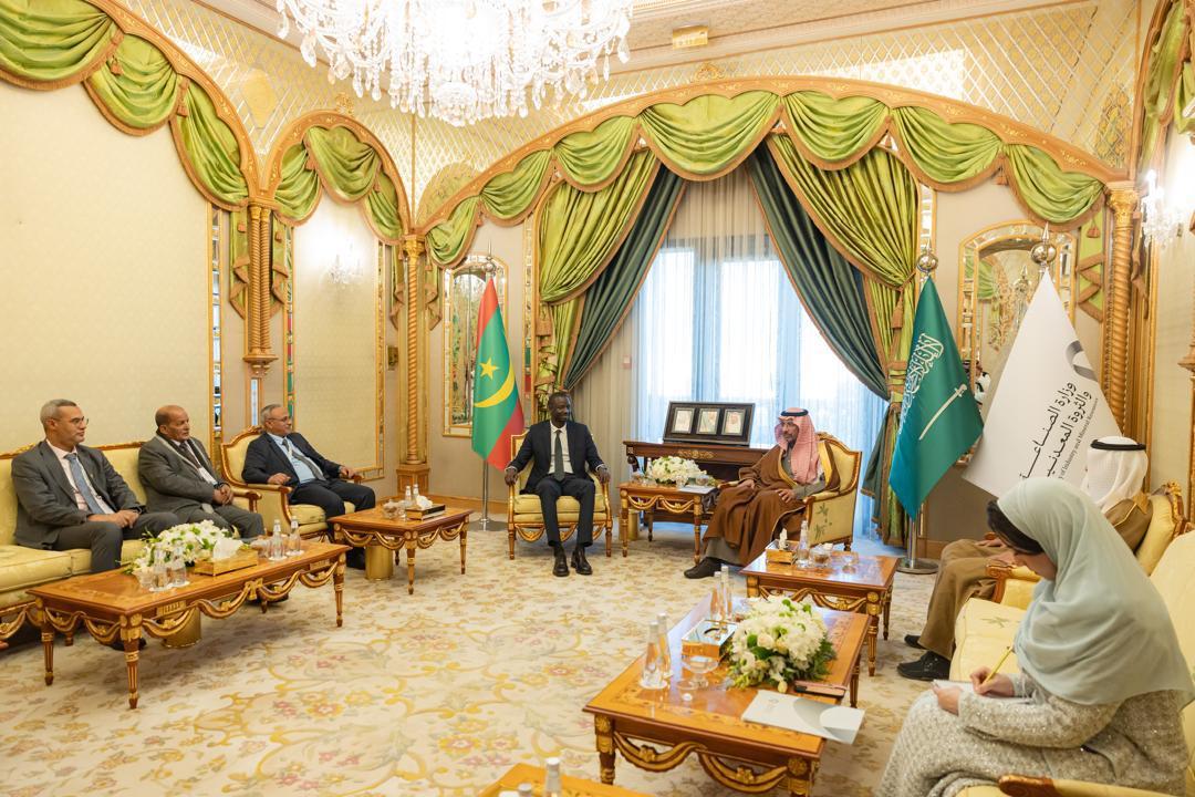 بحث وزير المعادن والصناعة تيام تيجاني مع وزير الصناعة والثروة المعدنية بالمملكة العربية السعودية بندر الخريف آفاق تطوير التعاون بين موريتانيا والسعودية.