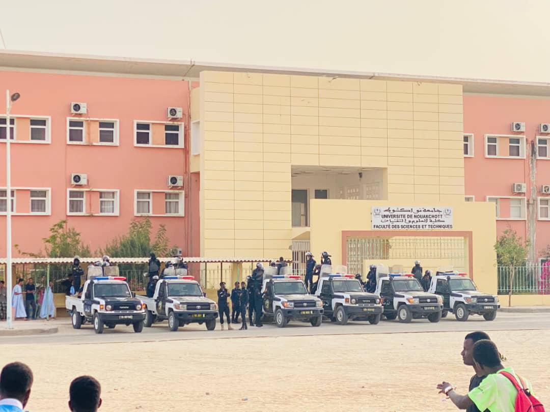 May 08 / التعليقات الشرطة توقف عددا من طلاب جامعة نواكشوط بواسطة mohamed أوقفت الشرطة اليوم الخميس عدة قيادات طلابية من نقابي الرابطة الوطنية للطلاب الموريتانيين، والنقابة الوطنية للطلاب الموريتانيين، وذلك عقب مواجهات ضمن اليوم الثاني من احتجاجات طلابية رافضة للقرارات الصادرة عن المجلس التأديبي للجامعة في حق عدة طلاب. خميس, 2025/05/08 - 19:07