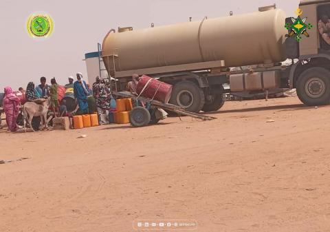 خصصت الكتيبة الموريتانية المشتركة لمجموعة دول الساحل الخمس، صهاريج لتزويد حي المستشفى بمدينة باسكنو، بالمياه الصالحة للشرب بشكل أسبوعي.