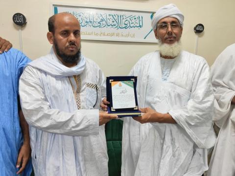 وفي نهاية الحفل قدم رئيس لمنتدى شهادة شكر وتقدير لمقدم الدور الشيخ الدكتور أمين حوية الجكني.