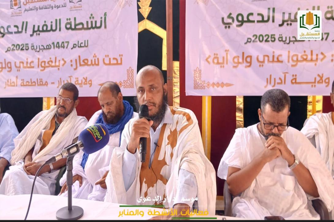 أعلنت جمعية المستقبل للدعوة والثقافة والتعليم صباح اليوم، على مستوى ولاية آدرار ، انطلاقة النفير الدعوي للعام 1447هـ/2025م، تحت شعار: "بلّغوا عني ولو آية".