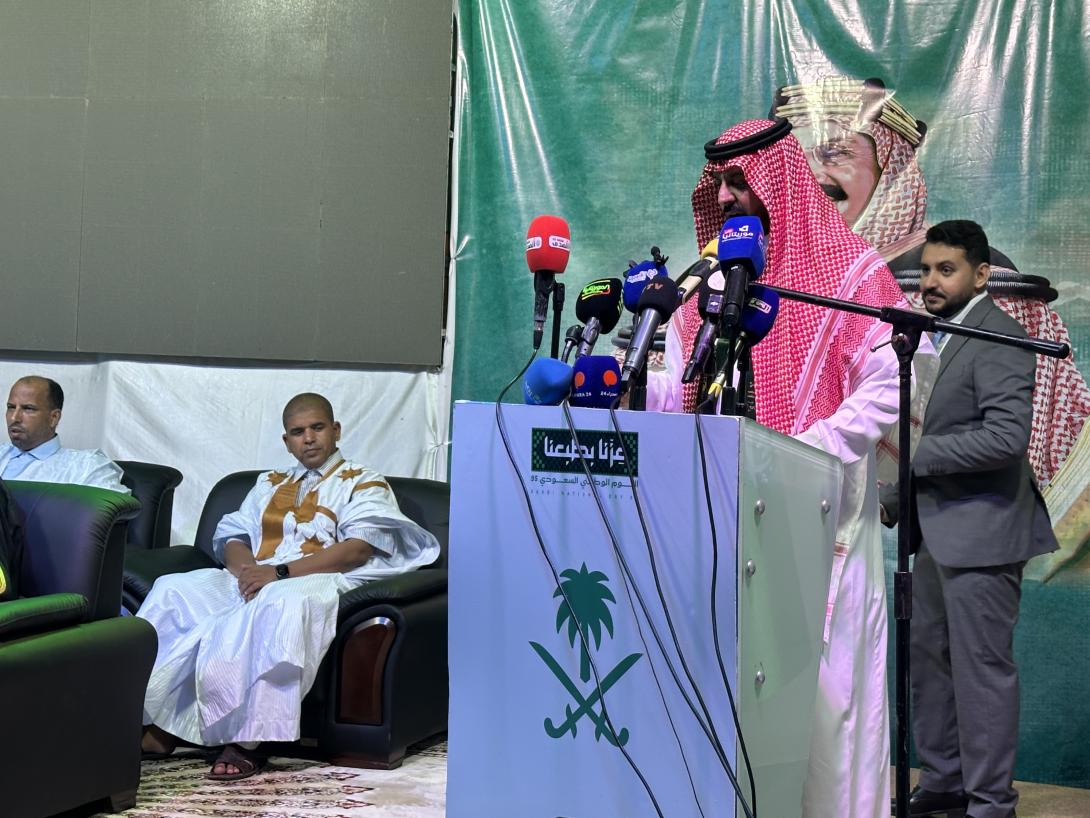 وأشاد سفير المملكة العربية السعودية المعتمد لدى موريتانيا سعادة الدكتور عبد العزيز بن عبد الله الرقابي، في كلمته بالمناسبة، بالعلاقات المتميزة والأخوية والتاريخية بين موريتانيا والمملكة، مشيراً إلى أن تلك العلاقات ظلت قائمة على التعاون الصادق والتقدير المتبادل، مع تطابق واضح في المواقف ووجهات النظر حيال القضايا الإقليمية والدولية بما يخدم مصالح الأمة العربية والإسلامية ويعزز الأمن والسلم الدوليين.