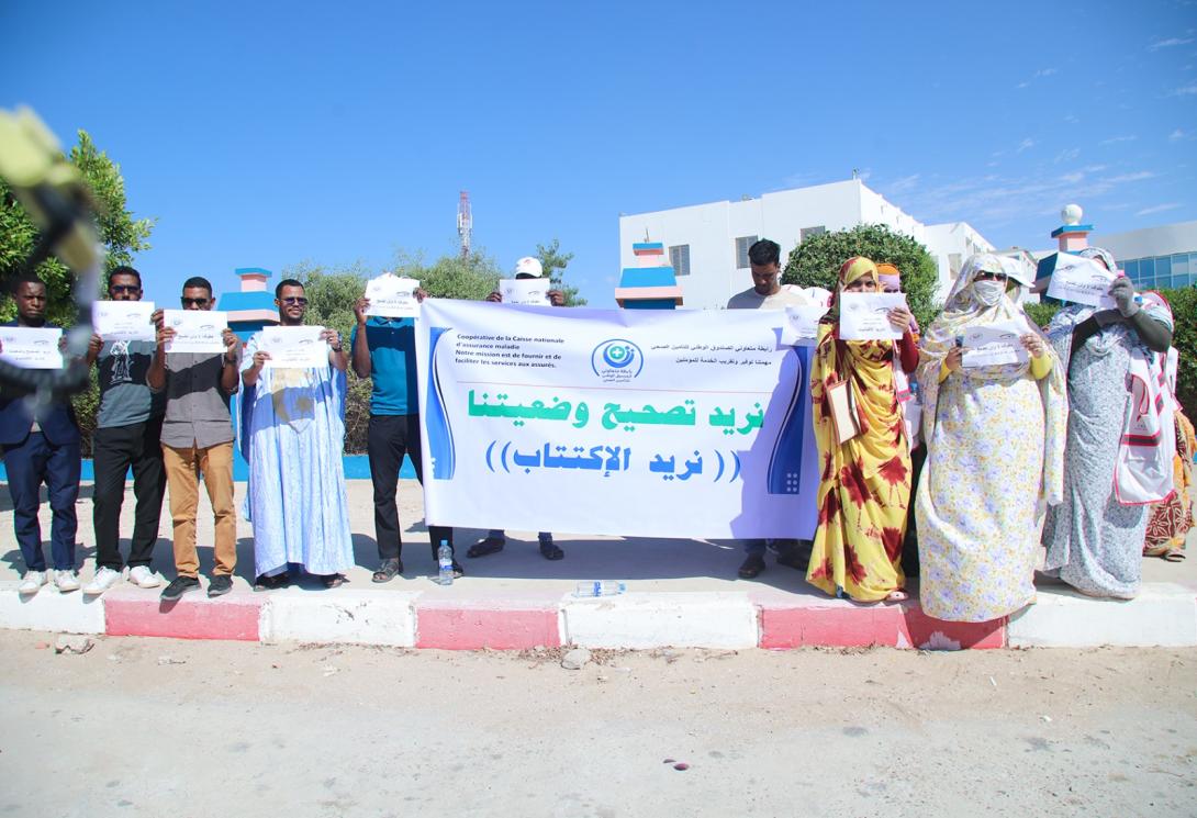 احتج عدد من المتعاونين بالصندوق الوطني للتأمين الصحي صباح اليوم الثلاثاء أمام الوزارة الأولى، للمطالبة بالاكتتاب.