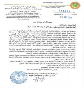 تستعد ولاية آدرار لانطلاق الحملة الدعائية الخاصة بانتخابات التمثيلية النقابية منتصفَ ليل الأربعاء، على أن تستمر حتى 30 أكتوبر الجاري، فيما يُجرى التصويت يوم السبت فاتح نوفمبر المقبل، في أول تجربة من نوعها منذ أكثر من عقدين.
