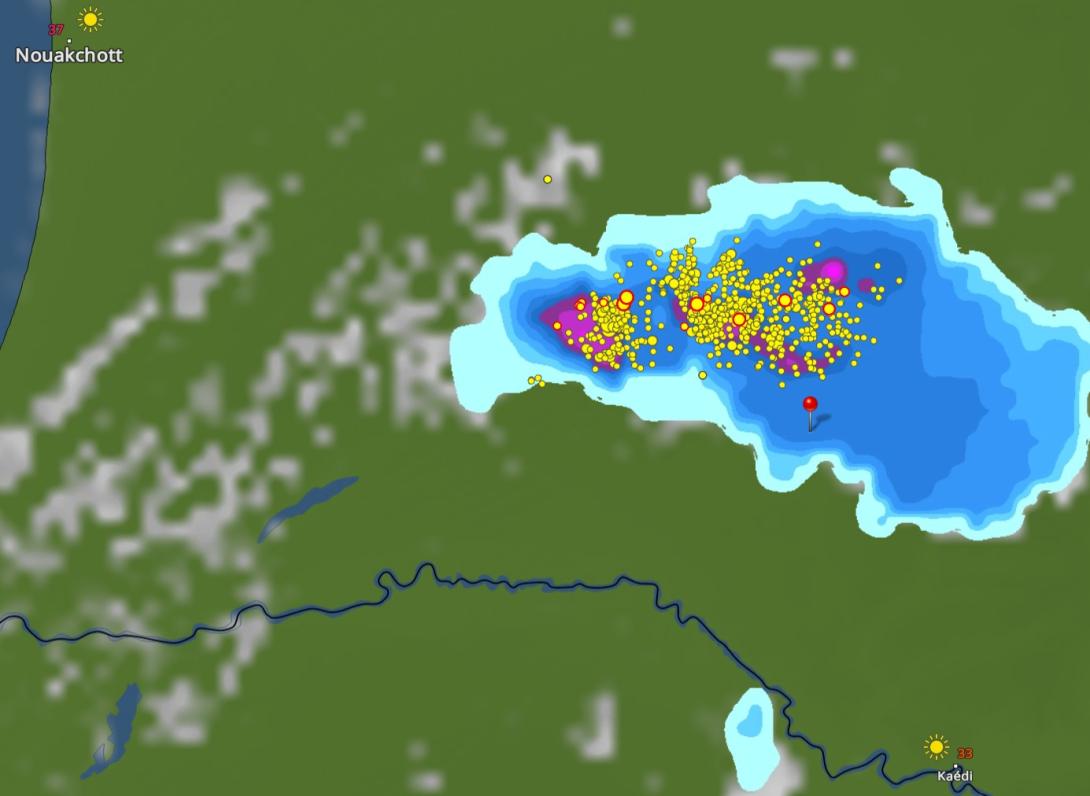 رُصدت بعد ظهر اليوم سحب ماطرة خفيفة إلى غزيرة على النصف الشمالي من ولاية البراكنة، حيث تشير المعطيات إلى تحركها غربًا باتجاه ولاية اترارزة.