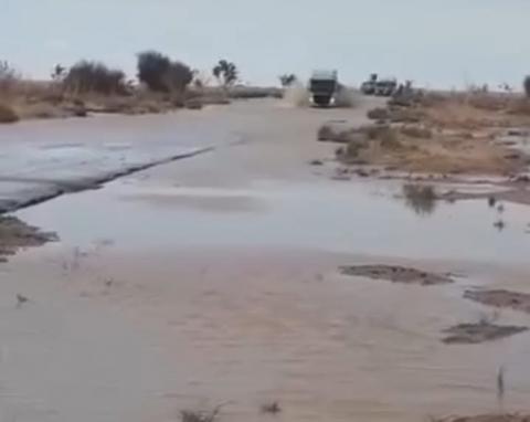 قطعت السيول طريق نواكشوط نواذيبو عند "واد الشبكة" تحديدا بالقرب من منعرج تازيازت .
