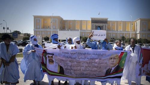 احتج صباح اليوم الإثنين عدد من عناصر الشرطة الموريتانيين المبتعثين للإمارات أمام القصر الرئاسي في نواكشوط للمطالبة بإنصافهم من قبل الحكومة الموريتانية ودولة الإمارات العربية المتحدة.