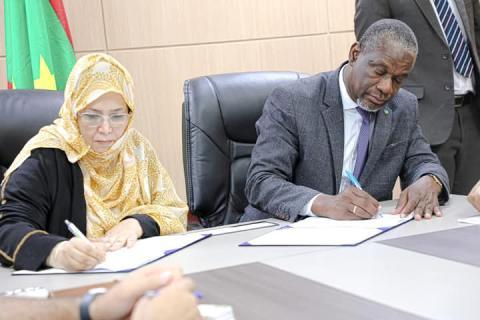 وقّع الأمين العام للمندوبية العامة للتضامن الوطني ومكافحة الإقصاء “التآزر”، السيد صدفي ولد سيدي محمد، والمديرة العامة لشركة النقل العمومي، السيدة مريم منت المفيد، اليوم الاثنين بمقر المندوبية، اتفاقية تعاون تهدف إلى توفير نقل مجاني لصالح 4657 طالبًا وتلميذًا من الأسر المتعففة، وذلك في إطار برنامج “تعمير” الذي أطلقه فخامة رئيس الجمهورية، السيد محمد ولد الشيخ الغزواني، في 20 فبراير الماضي.