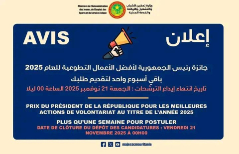 وحددت المديرية يوم الجمعة 21 نوفمبر 2025 موعدًا نهائيًا لإيداع الملفات، مؤكدة أن الجائزة تهدف إلى تعزيز ثقافة التطوع وتشجيع المبادرات التي تسهم في خدمة المجتمع وترقية العمل المدني.