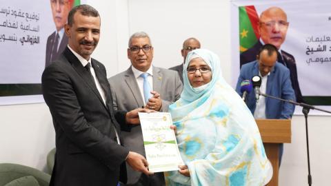 أشرف معالي وزير الثقافة والفنون والاتصال والعلاقات مع البرلمان، الناطق باسم الحكومة، السيد الحسين ولد مدو، ظهر اليوم، بمباني إذاعة موريتانيا، على حفل توقيع عقود العمل الخاصة بالتسوية النهائية لملف المتعاونين في الإعلام العمومي، تنفيذاً للتعليمات السامية لفخامة رئيس الجمهورية الرامية إلى إنهاء هذا الملف بشكل عادل وشامل.