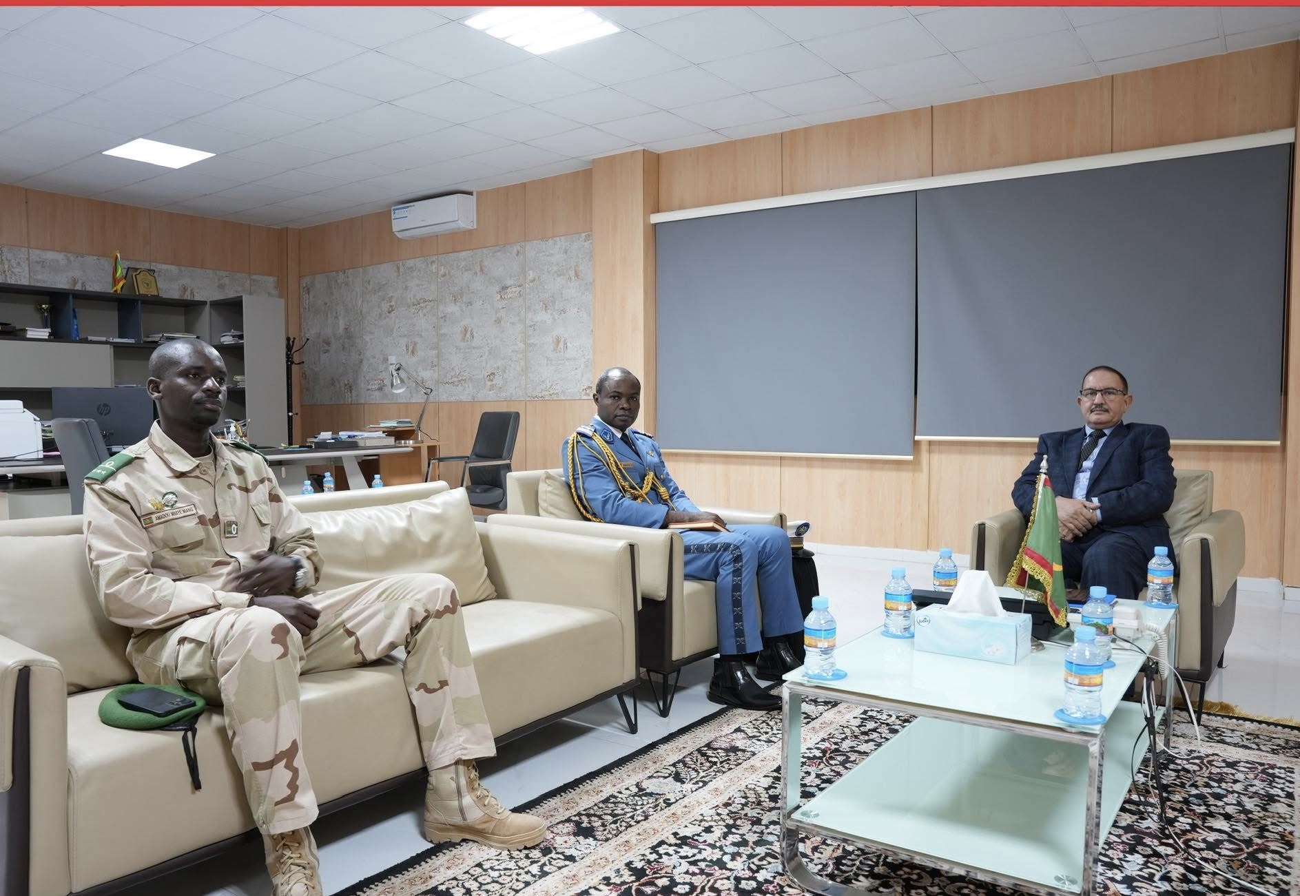 استقبل الأمين العام لوزارة الدفاع وشؤون المتقاعدين وأولاد الشهداء؛ العقيد إسحاق عبد الله محمود ابراهيم، بمكتبه صباح اليوم الجمعة 21 نوفمبر 2025، الملحق العسكري لجمهورية الكاميرون المعتمد لدى موريتانيا، العقيد ميلينغي فيس سيليستين أشيل .