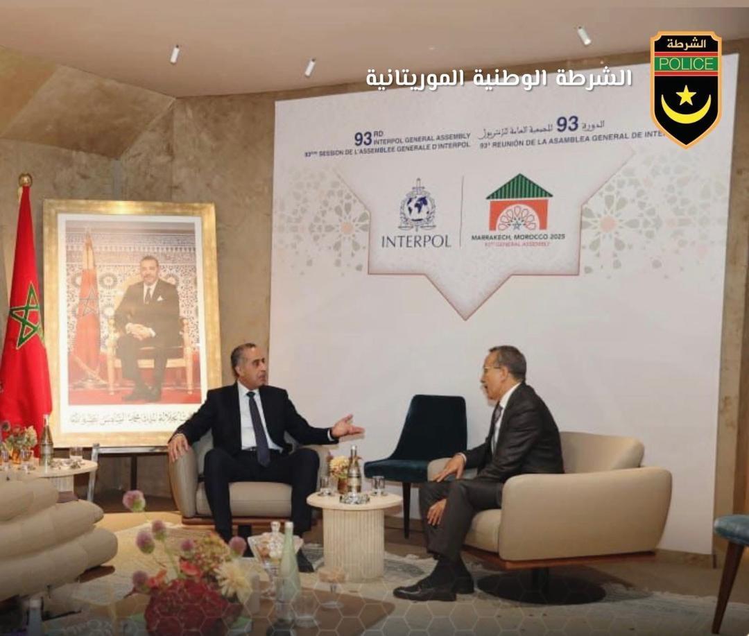 التقى المدير العام للأمن الوطني الفريق محمد لحريطاني بنظيره المغربي المدير العام للأمن الوطني ومديرية مراقبة التراب الوطني عبد اللطيف حموشي، على هامش أعمال الجمعية العامة للمنظمة الدولية للشرطة الجنائية المنعقدة في مدينة مراكش ما بين 24 و27 نوفمبر 2025.