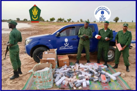 أعلن الدرك الوطني إحباط تهريب مواد ممنوعة وومثرات عقلية، عند نقطة التفتيش بأغشوركيت شرق بوتلميت، ومدينة تكنت جنوب نواكشوط.