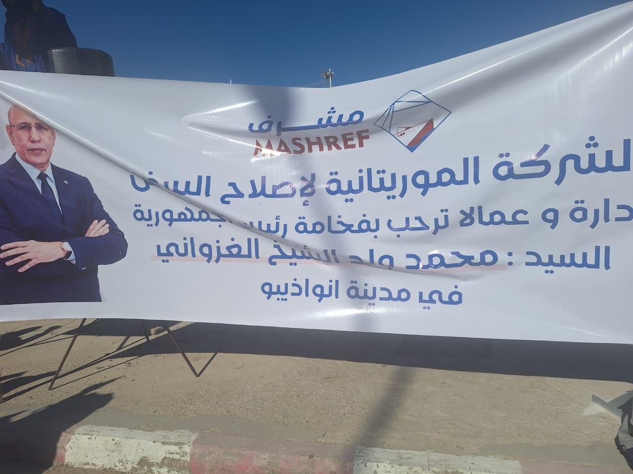 الشركة الموريتانية لاصلاح السفن مشرف إدارة وعمالا يرحبون بفخامة رئيس الجمهورية السيد محمد ولد الشيخ الغزوانى وحسب تصريح أحد مناديب العمال الحافظ ولد السنى ولد محمد توافد العمال جميعا لاستقبال رئيس الجمهورية بنواذيبو.