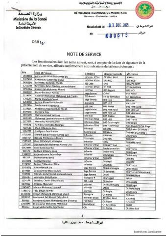 Jan 01 / التعليقات وزارة الصحة تجري تحويلات لعشرات الممرضين والأطباء بواسطة mohamed أصدرت وزارة الصحة مذكرة عمل أجرت بموجبها تحويلات لعشرات من الممرضين والقابلات والمخبريّين والأخصائيين.وحسب المذكرة المؤرخة بـ31 ديسمبر 2025، فقد شملت التحويلات مناطق متفرقة من الداخل وكذا العاصمة نواكشوط، في إطار إعادة توزيع الموارد البشرية. خميس, 2026/01/01 - 10:03