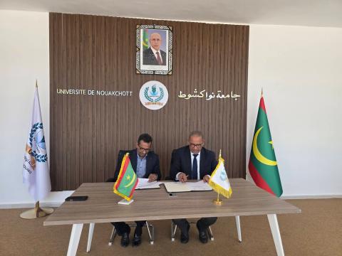 وقّعت جامعة نواكشوط ومشروع مشروع صمود وتنمية مجتمعات وادي نهر السنغال (PRDC-VFS)، اليوم الخميس 19 فبراير 2026، اتفاقية إطار للتعاون بمقر الجامعة، بهدف دعم إدارة المعرفة وتعزيز التنمية المحلية في مناطق تدخل المشروع.