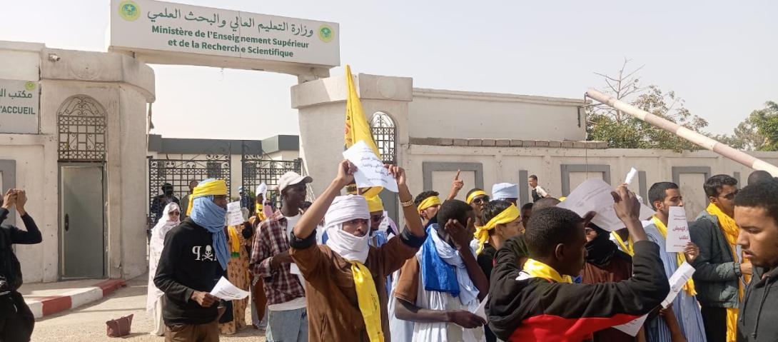 نظم الاتحاد العام للطلاب الموريتانيين(UGEM) اليوم الاثنين، وقفة احتجاجية أمام مقر وزارة التعليم العالي والبحث العلمي، بمشاركة عدد من الطلاب.