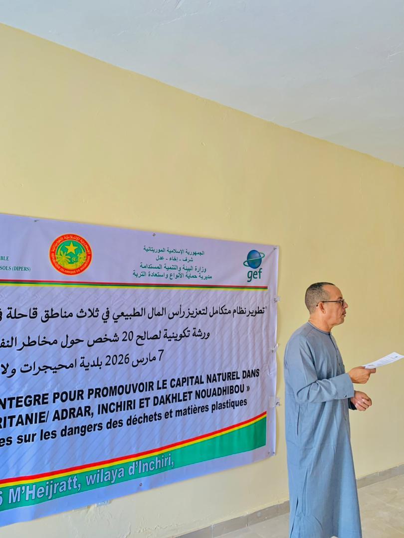 احتضنت بلدية امحيجرات التابعة لولاية إينشيري ورشة تكوينية حول مخاطر النفايات والمواد البلاستيكية، استفاد منها 20 مشاركًا من سكان البلدية، وذلك في إطار أنشطة مشروع DRYLANDS الهادفة إلى تعزيز الوعي البيئي في المناطق الجافة.